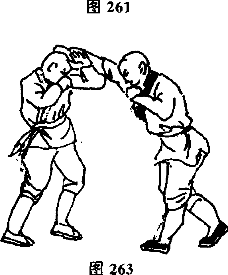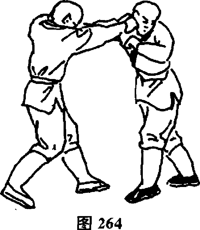 随y同时,以右手向前冲打敌头部(图264,