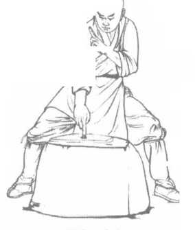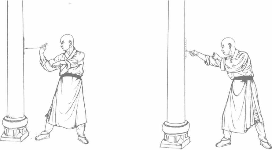 2 指顶既渐坚实则可练习点石并中、食二指或单用一指向平滑坚硬之石上依前法点之。(图2-26、图2-27)