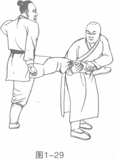 但敌人直立而我欲拿其此部者可用单手拿之手法完全不变唯撤去擒手不用耳。