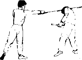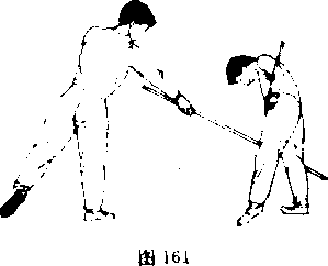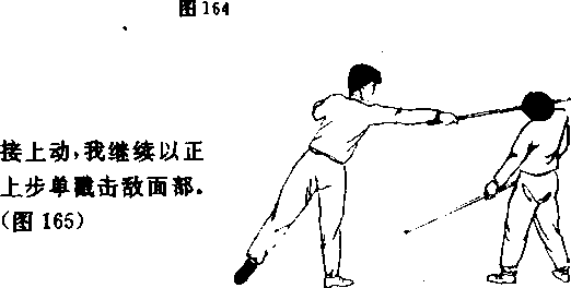 我以格斗势与敌对中发现战机迅速以前滑步棍击敌面部敌急后内(图159)图16图16接上动我继续以前滑步扫棍击敌头颈敌再后闪图160)9前漫步挑棍——反上步单男9前漫步挑棍——反上步单男接上动我维续以反上步单扫击敌腿部(图161)我以格斗势与敌对峙中发现战机迅速以前滑步挑棍击敌裆部敌急撤步后闪(图162)图163图163接上动我继续以反上步单臂击敌头肩(图163)前滑步劈棍——正上步单段我以格斗势与敌对峙中发现战机,迅速以前清步劈棍击敌持棍之手符敌螭手后闪图164)