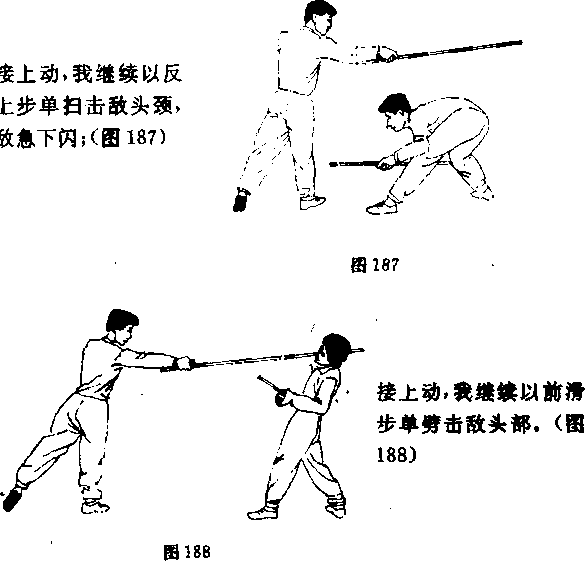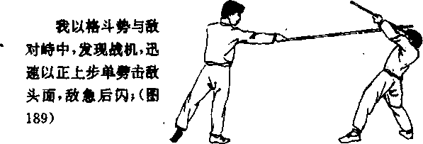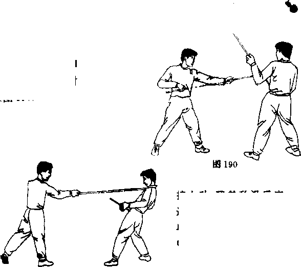 191接上动我慧敌没反应过来迅速再以反上步单扫击敌头裁或上体接上动我继续左脚正上步前移靠近对手(图190)