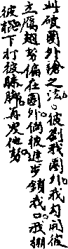 注曰:敌劄圈 外,顺力一勾。退步 偏立,虚闪何愁。倘 劄圈里,硬靠打头, 进身迎转,锁口封 喉。