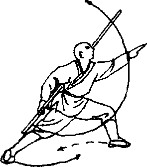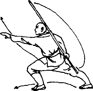 两脚不动,两手握棍反把由下向前方刺棍,目视棍梢。(图 367)