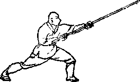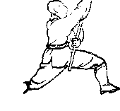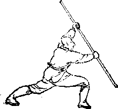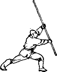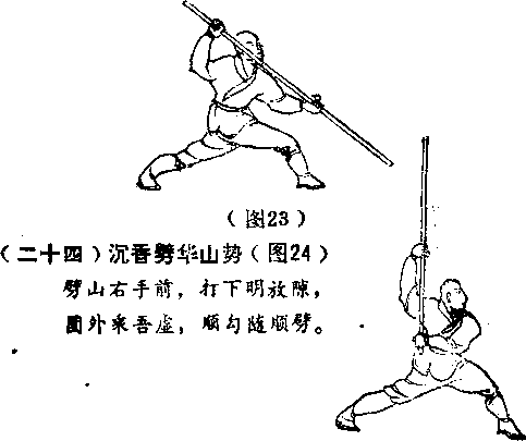 (图27 )(图27 )雁翅先勾圈外枪,铀口扎来蹦打易, 其棍横在左腰胯间。