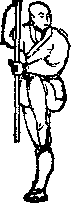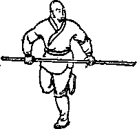 (=+ra)朝天枪势(图34) 朝天三不静,以柔制刚同, 句开打胸后,名唤一窝蜂。