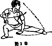 左脚蹬地后提右脚从左脚前面盖跳眼向前平视(图31),
