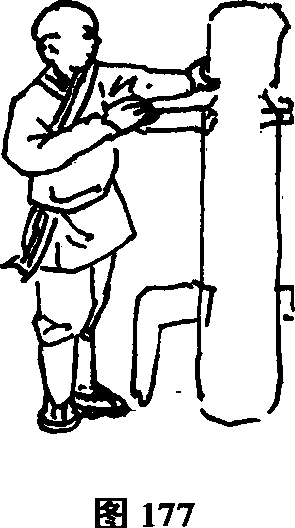 击木人桩的裆部(图179)。