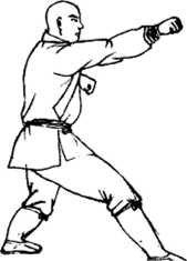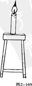 阳光手为软功内壮网阴柔之劲。共效力虽不及一指禅、朱砂学之凶猛然亦不稍逊。此手之练习者功成若人被击手着胸前初不觉痛待过一小时则痛发于背。有所谓隔山打牛即指此也。共练法至简用青油灯一盏(或烛灯)灯焰高至半寸置灯案端身立灯前三尺取马裆姿势气沉丹田,聚精会神出拳对灯遥击之经一炷者为止,每天早晚习之不间断不懈怠至灯焰能击火时则初步功夫成。再渐渐退步至71步距离能一拳将灯击灭日寸则功成矣。(图3-169)挥拳击物距二三步拳不及身被击者已仆诚阴手也。第精功七
