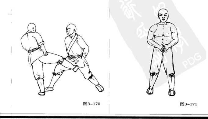 门裆功又名金蜥功为软功外壮属阴柔之劲具内功之主功其法至难即将肾部练得坚实功夫。(图3-170)