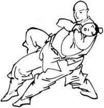 进身刁腕锁咽喉,拉臂紧锁别腿摔。