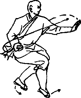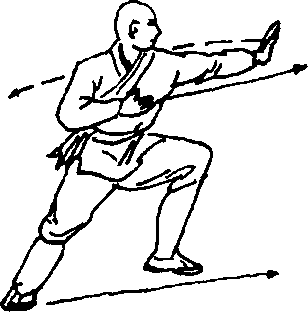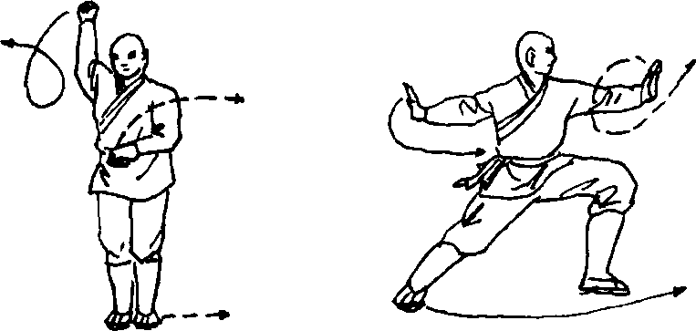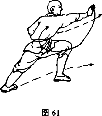 [实 用]如敌向我攻来,我用前臂向外猛一撑击,同时下边 用腿拌住敌腿,敌即跌倒。后边来敌攻我,我用右臂向后猛击敌人, 同时下边腿拌敌腿,敌人也同样栽倒在地。