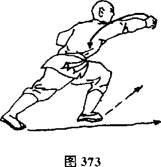 依上法再弹左脚,冲右拳(见图376)。