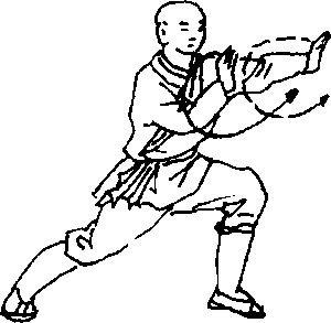 [实 用:]敌人用拳或掌向我打来,我弓步进身一手托敌肘 尖,一手抓敌手腕,两手夹住相互一挤,敌肘即骨折或脱臼,使 敌人投降败阵。