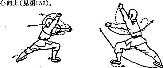 (图153)部目视前方(见图160)。(图153)部目视前方(见图160)。右掌变拳由后向前屈肘前崩拳拳心向上口左掌由左向右屈肘拍击右肘上方(见图159)。上动不停右脚前落一步抬左脚向前溜地前踢同时左掌变拳由后向前屈肘上冲拳心向上同时右变学由拳后向左屈肘拍击左肘上上动不停抬右脚向前踢右右掌变拳由后向前屈肘前崩拳拳心向上口左掌由左向右屈肘拍击右肘上方(见图159)。上动不停右脚前落一步抬左脚向前溜地前踢同时左掌变拳由后向前屈肘上冲拳心向上同时右变学由拳后向左屈肘拍击左肘上上动不停抬右脚向前踢右