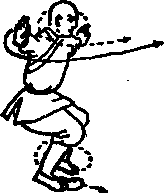 心向左左手向后甩成勾手目视前方(见图2如)
