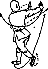 上动不停左脚踏实,变成右弓步,两掌变拳右拳向前猛冲拳心向下左拳屈肘抱于腰间目视右拳(见图234)。