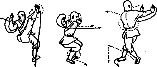 息身,体左转的度然后再起跳抬右脚向前向上弹踢,当全身腾空时出右手拍击右脚面(见图226)口