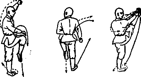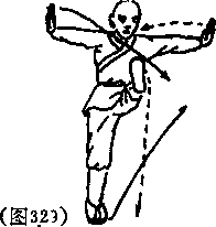右脚落于左脚外侧两脚起跳抬右脚随身体左转18度向左旋摆当全身腾空时出左手拍击右脚掌内侧(图同一路第图)