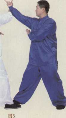 甲方(蓝衣者)以右式跃手探乙方(白衣者)之虚实乙方慌乱伸手接式(图5),甲方趁对方慌乱之际速以左手拍打乙方右小臂(此瞒天过海之法)(图6),同时上前脚踏其中门以透风掌震其面门之印堂穴(图7)印堂穴在面部两眉之间。击打后可令对方头晕脑涨瞬间丧失战斗力。