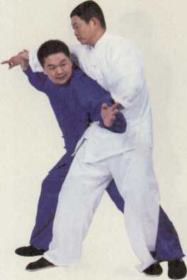 要点三回九转是一式说的就是这种大转劲。身法旋转时要缩身后脚扣住对方后腿以固其根。