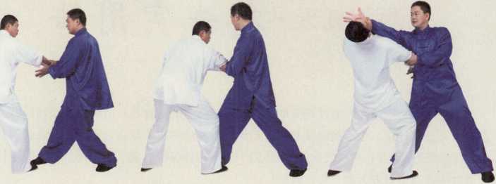 要点以自身的六合来破坏对方的合劲顾左打右打出刹那间的搓击劲。