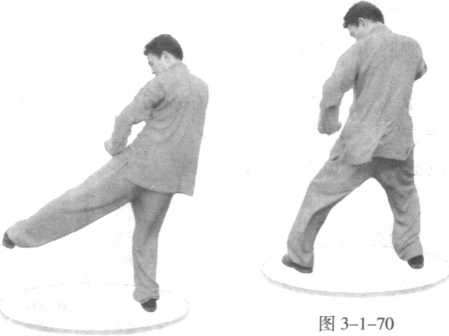 左腿下落,脚跟跺地,脚尖向里;双拳协动。(图3- 1-70)