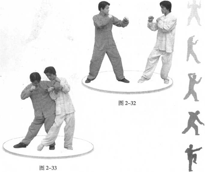 (2) 图 2-31图 2-31我见机急进, 左胯速出,猛力翘击敌前 胯。(图 2-33)