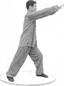 (2) 两腿向前进步,同时左手成五花爪向前上抓出,然后 SI向下拉拽,爪心向下,虎口在右。(图6-83)
