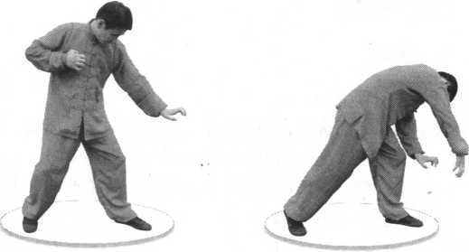 (3) 图 6-82图 6-82图 6-81图 6-81不停顿。双爪连动向下大幅拉拽,臂节弯曲,上身前 弯,桩势下沉。(图6-82)