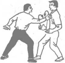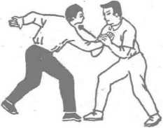 你和敌正面相 对,敌突然上右步用 右手抓住你前胸(图 15).