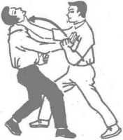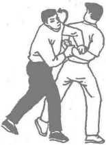 这时敌用右手抓 扭你右手腕,敌同时 用左手速拍压你右肘 部(图18).