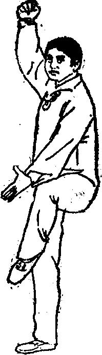拳从腰间冲拳右拳收回腰间(图600)喊第四次嘿力字时右脚戳地右拳冲拳左拳收回腰间。第三次、第四次喊嘿球士售隔时间要短而有力连续喊嘿字40次左右后,根据情况次数逐渐再增加。