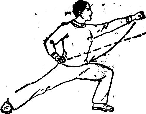 要点右脚向前蹬踹必须以脚跟为力点使腿由屈到伸向