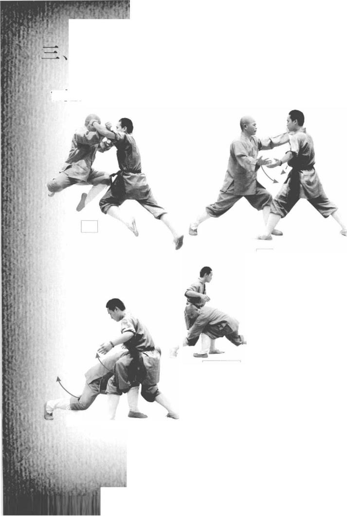 (3)接着我身体迅速向前重心下移后腿蹬地双手分别抱住对方两膝膝窝处并迅速起身利用两手后拉、右肩前顶的合力将对方抱离地面。(图3、4)