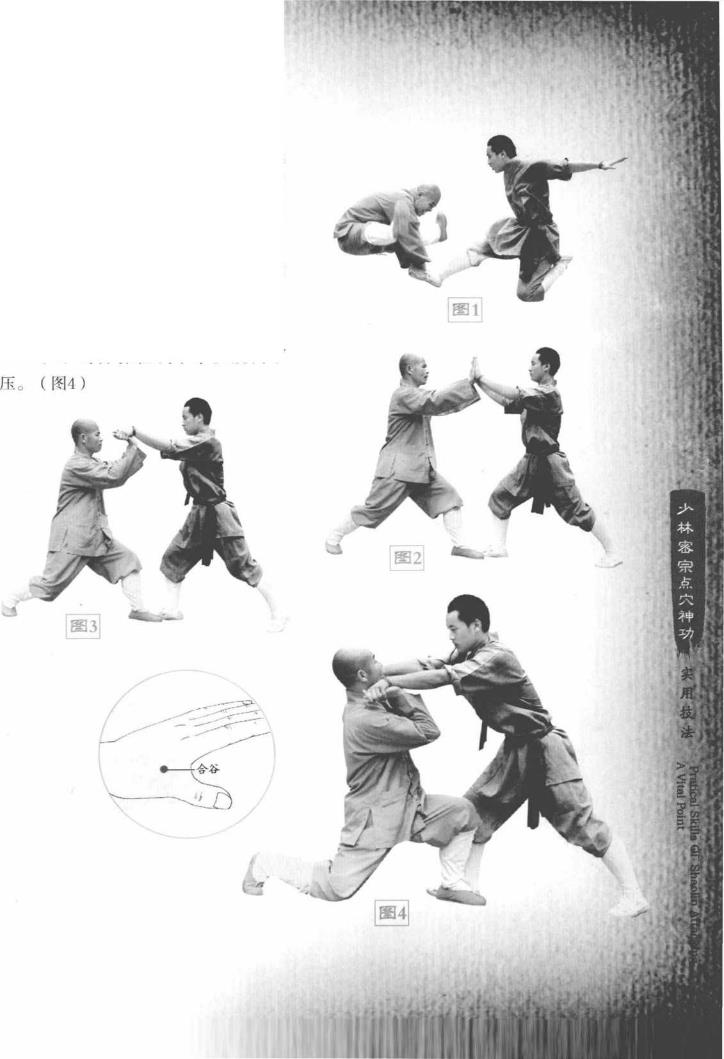 图2图2侧口袋点击胸腹部要穴侧口袋点击胸腹部要穴(1)我出右摆腿踢打对方对方收腹俯身躲闪我没击中。(图1)(1)我出右摆腿踢打对方对方收腹俯身躲闪我没击中。(图1)(2)我右脚顺势落地此时我的身体背对对方他上前用右小臂锁住我喉部。(图2)(2)我右脚顺势落地此时我的身体背对对方他上前用右小臂锁住我喉部。(图2)
