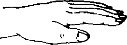 (3) 两臀向内斜向前伸出约45度左小臂与大臂的夹角约135度右小臂与大臂的夹角约100度两小臂与地面平,与肚脐同志两手掌心向下手指自然松直手掌成虎型(如图4-8所示九左手在前其方向与左小臂相同。右手五指对准左手腕部相距约迷伽图4-9所示)。