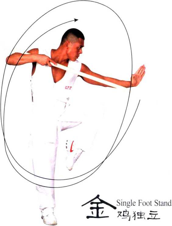 [W]右脚挺膝直立,支撑 全身重心