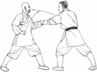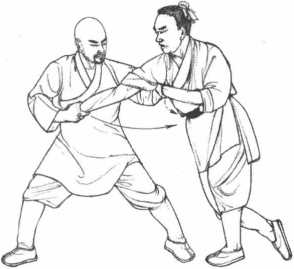 3 随即我方右掌外旋扣指抓住敌方右腕并向内翻拧且向右拉。(图5-16)