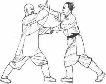 2 敌方迅速出右拳击打我方面部。我方抬起右掌向体外侧格挡敌方右腕外侧。(05-15)2 敌方迅速出右拳击打我方面部。我方抬起右掌向体外侧格挡敌方右腕外侧。(05-15)图5-15图5-15图5-16图5-163 随即我方右掌外旋扣指抓住敌方右腕并向内翻拧且向右拉。(图5-16)3 随即我方右掌外旋扣指抓住敌方右腕并向内翻拧且向右拉。(图5-16)