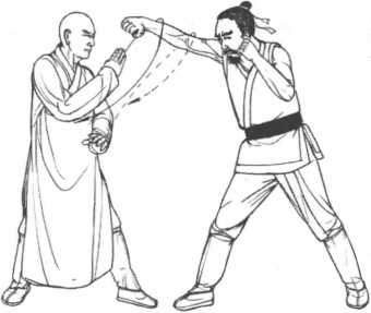 图2-47图2-47面而跌。(图2-47)面而跌。(图2-47)1 敌方右进步右拳磕击我方面部。我方迅疾后滑步吞身避过敌拳击打。(图2-48)图2-49图2-49图2-49图2-492 随即我方右手向上、向外拦敌右前臂外侧转腕圈臂将敌右腕缠抱夹裹于右胁前同时左掌推按敌右前臂外侧助力上体右旋拉伸敌右臂。(图2-49)图2-50图2-503动作不停我方右手后收拿住敌右腕左掌向前用掌根托击敌方下颌重创之。(图2-50)图2-50图2-50