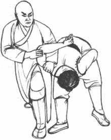 3 动作不停我方左手后滑抓住敌方右腕同时右手卡住敌方咽喉左肩后撤左转身将敌旋翻控制住。(图3-28)