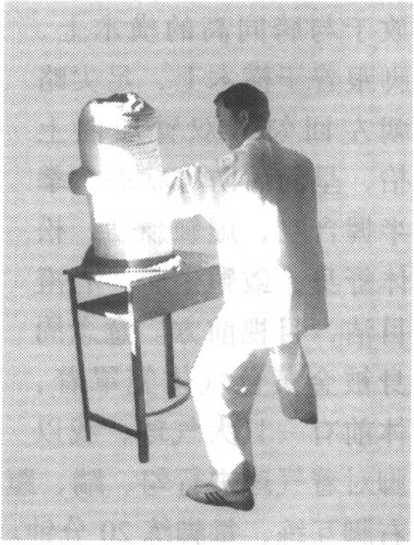 第三步 埋柏木桩于地下(或以沙袋代替),气聚丹田,:
