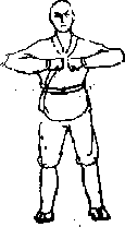 两手一哉由肋下绕出御掌平托与两肩相乎距头四五寸矿手要端,按指在肩之前其余四指在外图92)