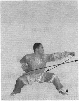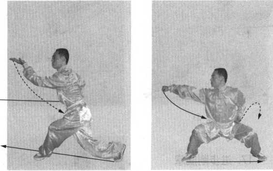脚,两腿屈膝半蹲;同时,右拳收于腰侧,左拳变掌由外向内 步 拨挡,目视左掌(图1-28 )0右腿挺直站立支撑身体,左腿屈 X