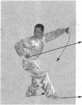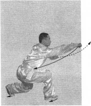 鸡步;同时,左螳螂钩变 掌,由外向内推挡;右螳螂 钩变拳向前侧冲出,拳眼向 上,高与肩平;目视右拳。 (图 5-13)