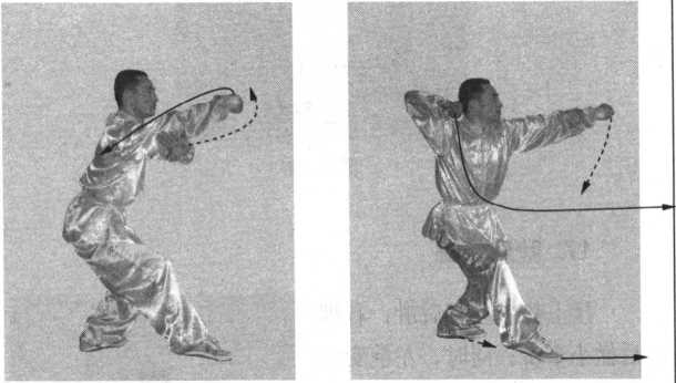 向后,高与颈部平;步型成右高虚步;目视左螳螂钩。(图 网