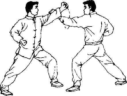 (5)甲缠腕马步冲拳,乙藏头马步抓腕(图4-5?