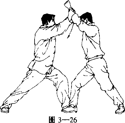 (26)乙震脚砸拳,甲震脚上托(图3-26)