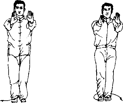 甲、乙并步站立,相距约4步;两臂垂于身体两 侧,五指并拢;目视前方。
