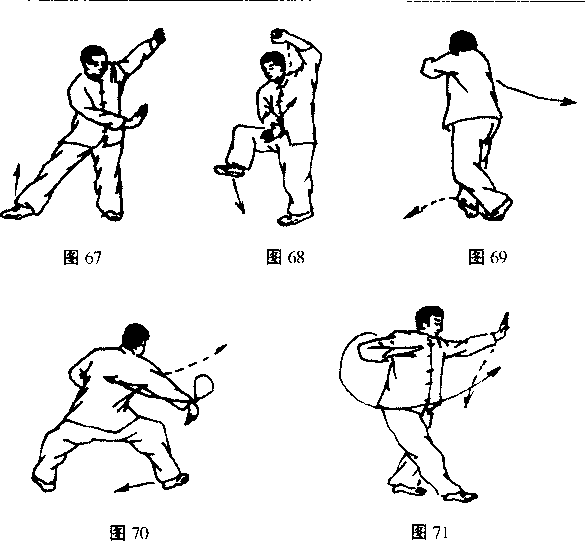 身体直立右转180度右脚提起(图68)